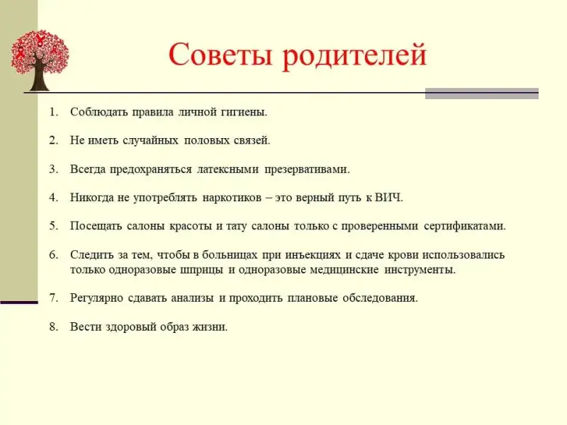 Каждый сам ответственен за свое здоровье. Необходимо отказаться от рискованного сексуального поведения до брака, избегать беспорядочных и случайных половых связей, сохранять взаимную верность, использовать барьерные средства защиты (презервативы), не употреблять наркотические средства, а также использовать только стерильные или одноразовые инструменты для инъекций, татуировок, маникюра и т.д.