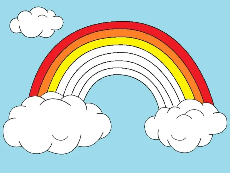На экране появляется радуга и загорается второй цвет - оранжевый (6 СЛАЙД)
