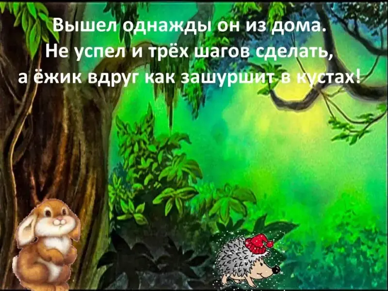Сказал так, и смело поскакал обратно в лес. (ХЛОПАЮТ ЛАДОШКАМИ ПО ТЕЛУ)