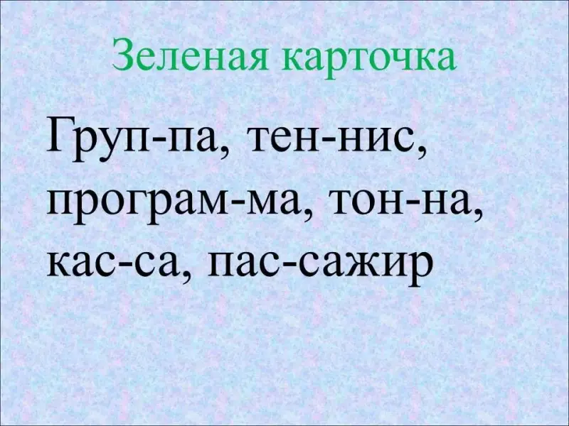 Зелёная карточка: спиши слова, разделяя их знаком переноса.