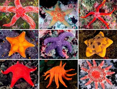 А еще мне бы хотелось с вами поговорить о всем известной морской звезде. Все ребята хорошо умеют делать звездочку на груди и на спине. И у всех получатся по-разному. Это ничего, ведь на самом деле известно более 1500 современных видов морских звезд!