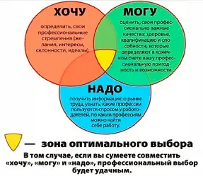 Для того чтобы быть успешным в выборе будущей профессии, необходима сбалансированность наших интересов, способностей и возможностей (хочу, могу и надо)