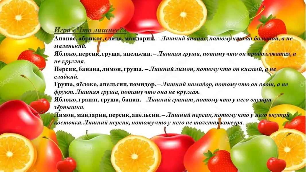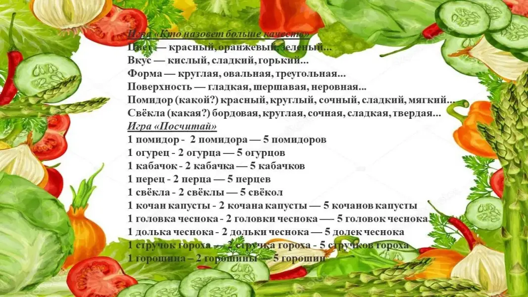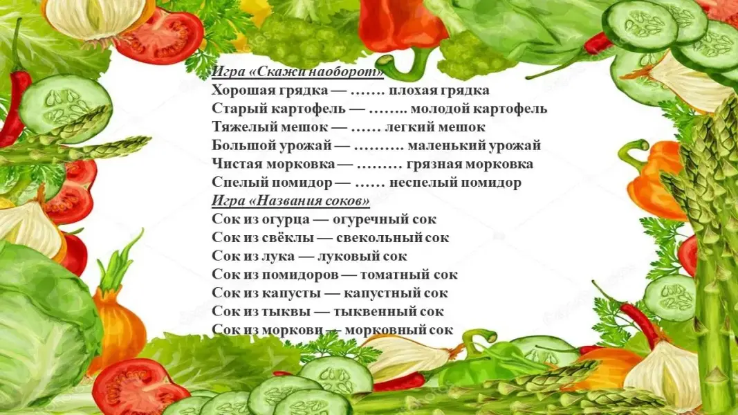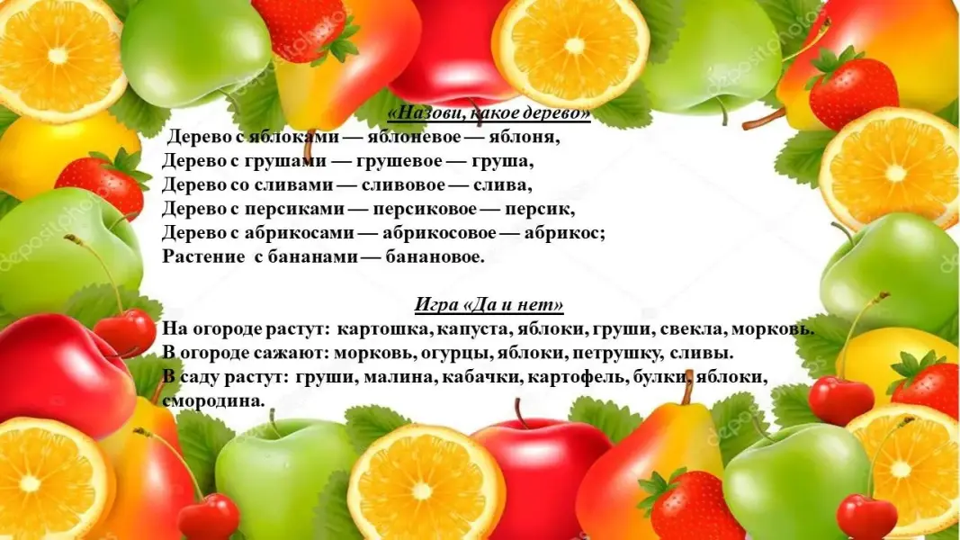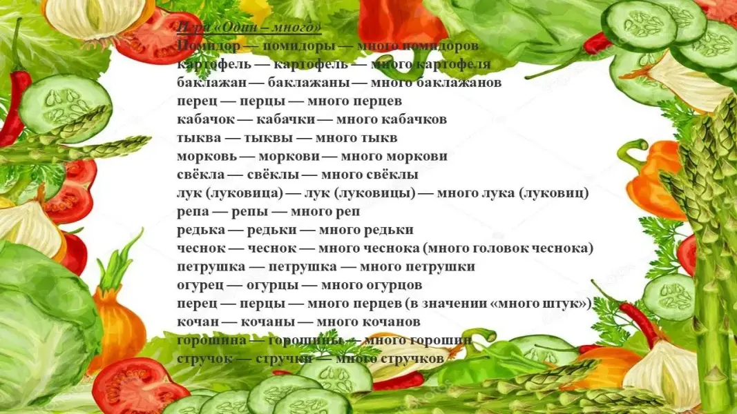 Речевые игры и задания к лексическим темам «Фрукты» и «Овощи»