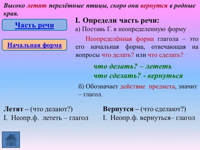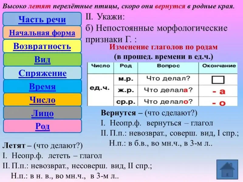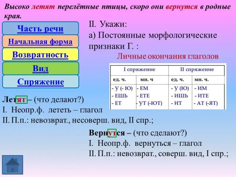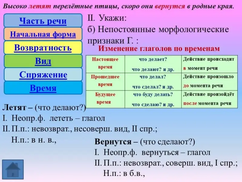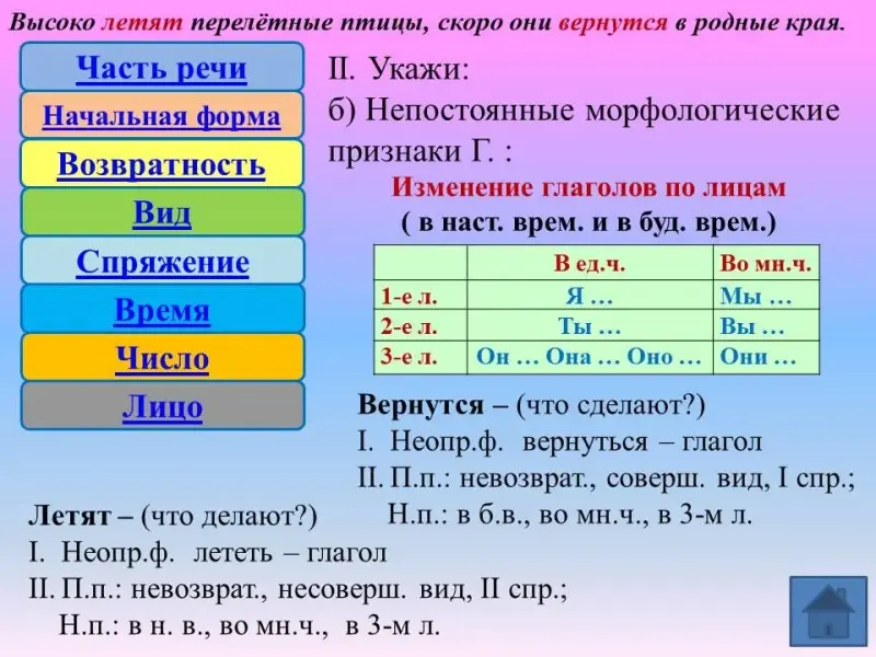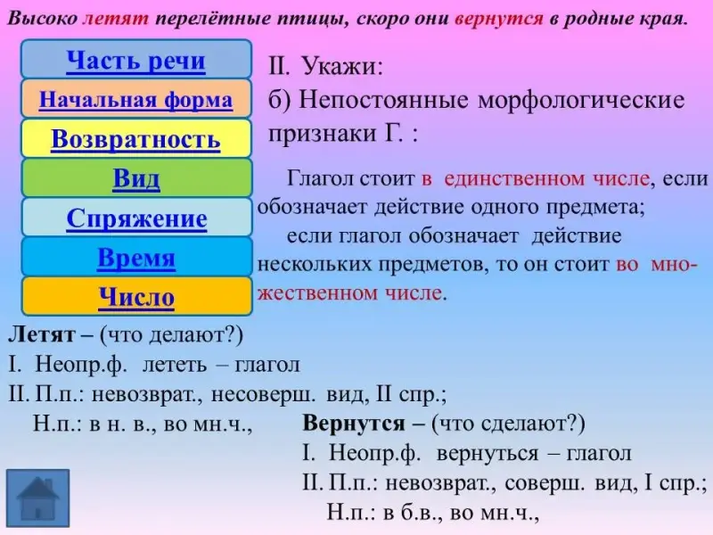 Учимся выполнять морфологический разбор глагола