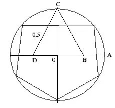 Разделив центральный угол пополам, получим сторону правильного десятиугольника.