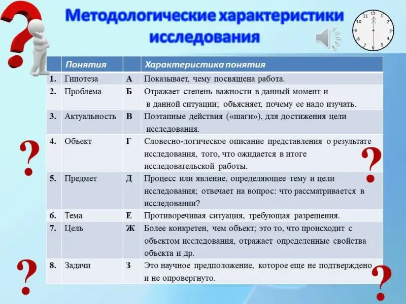 Для того чтобы самому осуществить маленькое, но выполненное в соответствие с основными научными требованиями исследование, необходимо владеть методологическими характеристиками исследования или понятийным аппаратом.