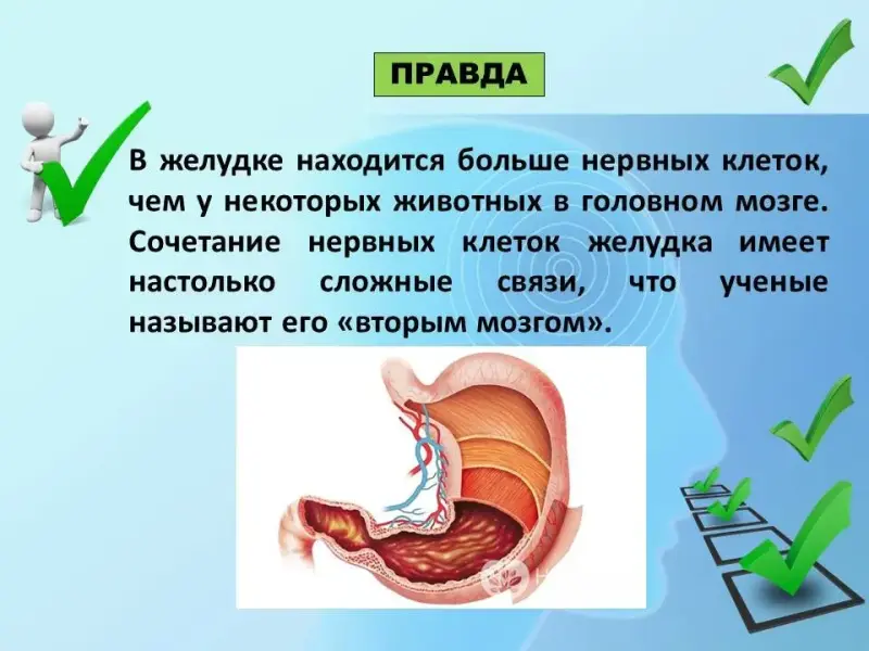 Например: Правда ли, что наш желудок называют «вторым мозгом»?