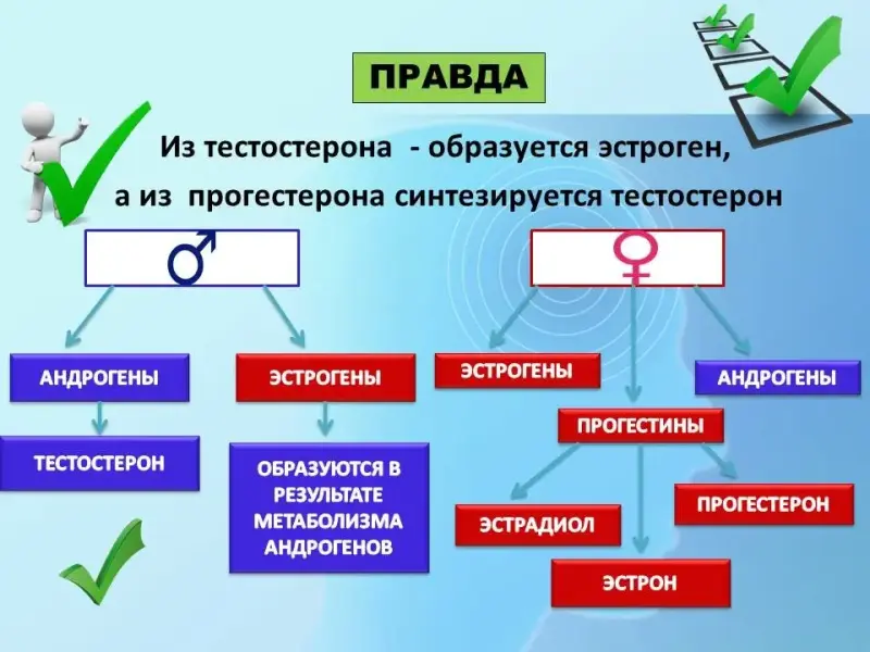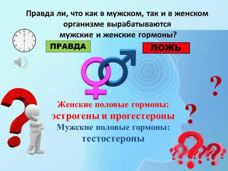2 вопрос. Правда ли, что как в мужском, так и женском организме вырабатываются и мужские и женские гормоны?