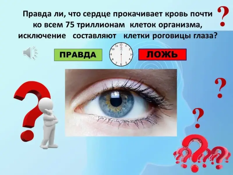 4 Вопрос. Правда ли, что сердце прокачивает кровь почти ко всем 75 триллионам клеток организма, кроме клеток роговицы глаза?