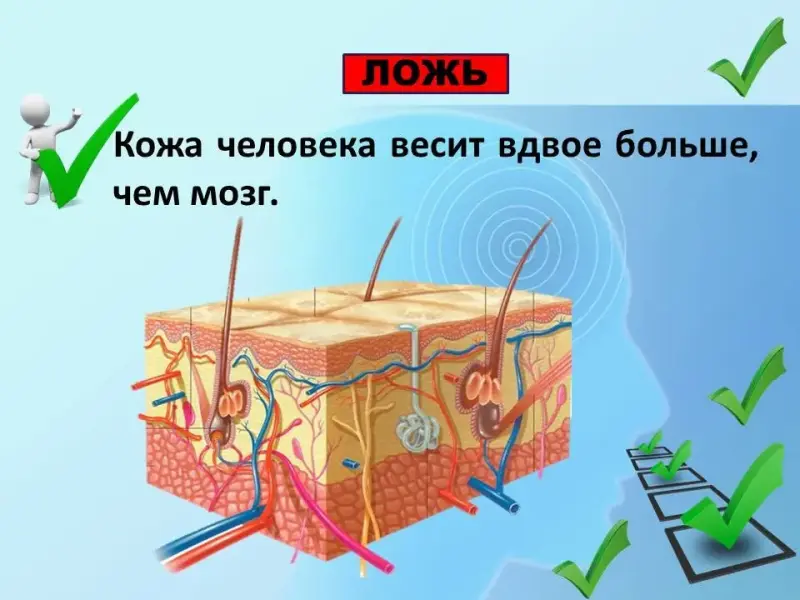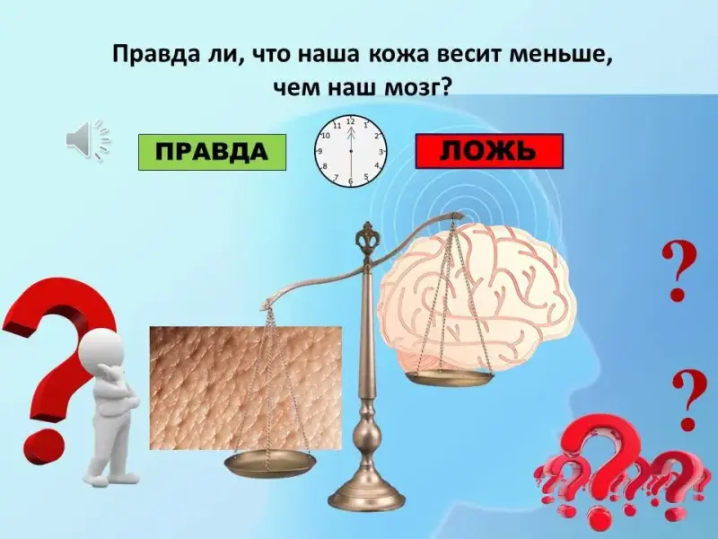 5. Вопрос. Правда ли, что наша кожа весит меньше, чем наш мозг?