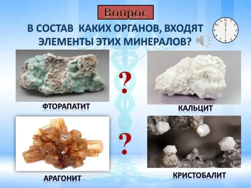 Вопрос. В состав, каких органов, входят элементы этих минералов?