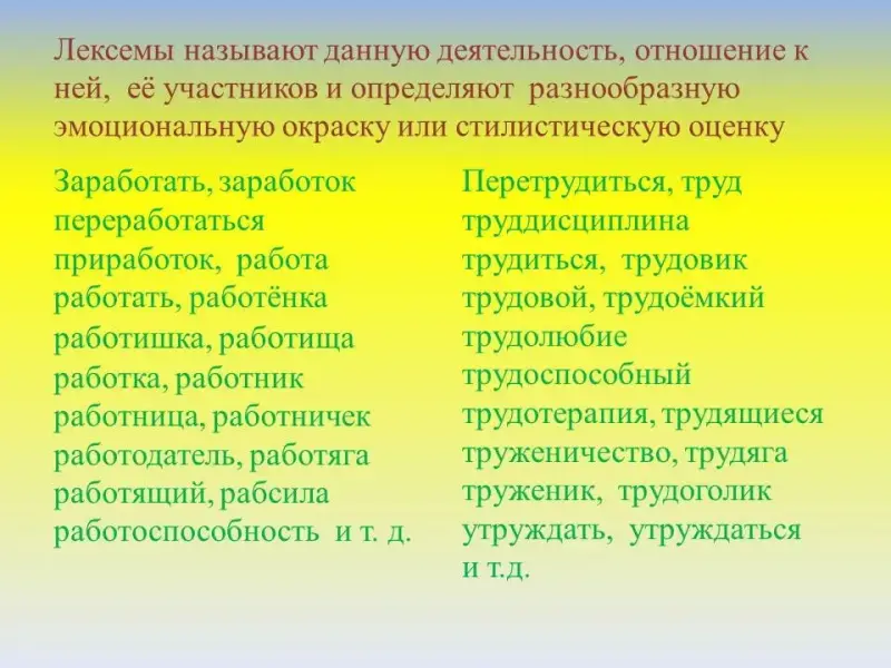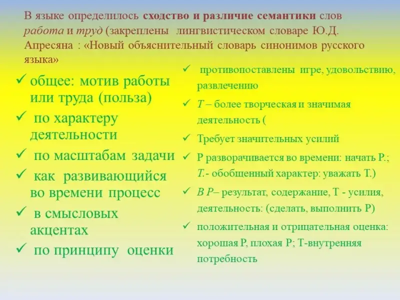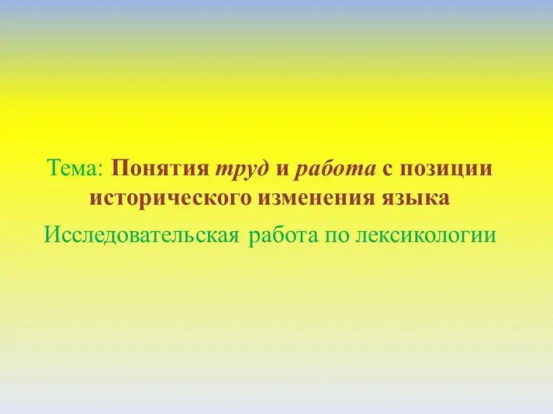 Понятия труд и работа с позиции исторического изменения языка. Исследовательская работа по лексикологии