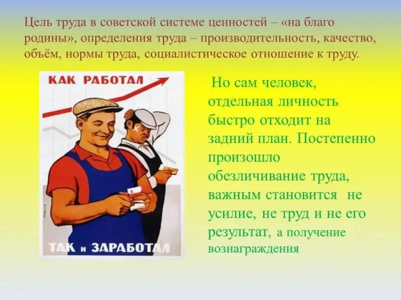 В языке происходит утрата, нейтрализация негативной оценки слова работа как рабской, недостойной, подневольной деятельности. Работа, сближаясь со словом труд, становится нейтральным обозначением обычного трудового процесса, естественного условия существования человека, его профессиональной деятельности, но сохраняет особенности значения наёмной работы - для заработка, по необходимости. В языке расширяются варианты сочетаемости этого слова, которое может уже употребляться и с неодушевленными существительными (человек работает - мельница работает). Слово труд по-прежнему употребляется только для определения человеческой деятельности.