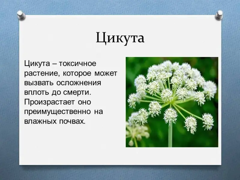 Цикута - токсичное растение, которое может вызвать осложнения вплоть до смерти. Произрастает оно преимущественно на влажных почвах.