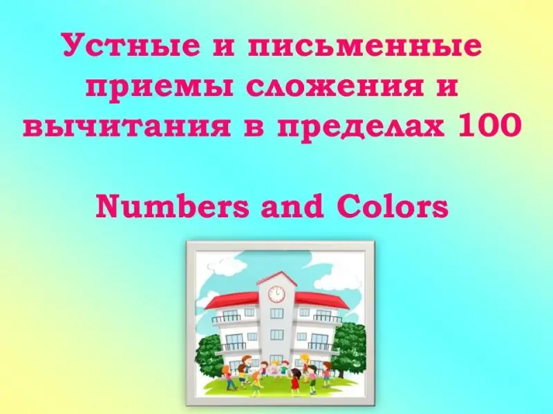Закрепление устных и письменных приёмов сложения и вычитания в пределах сотни. Повторение и закрепление числительных в пределах 10 и названий цветов на английском языке