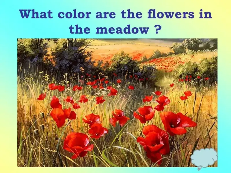 - What color are the flowers in the meadow?