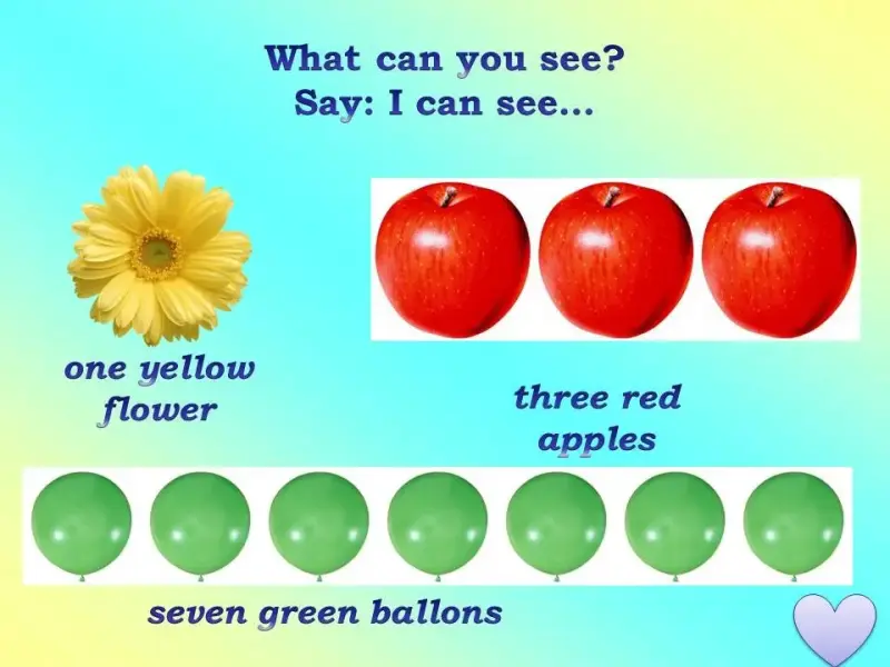- Скажите, что вы видите. Используйте образец: I can see.
