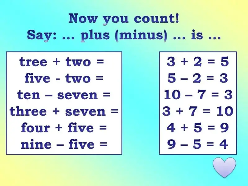 Тематика: сложение и вычитание в пределах 100, лексика по темам «Numbers», «Colors».