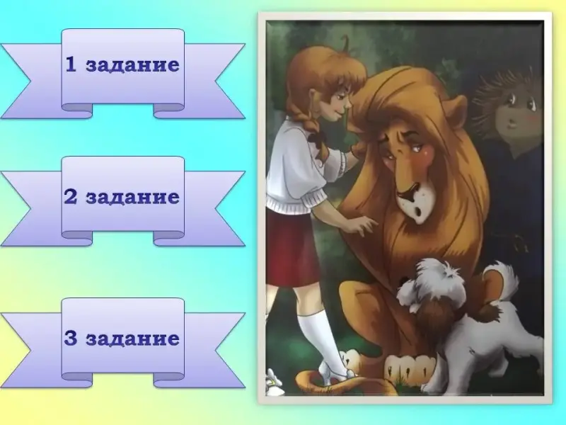 - So Dorothy and her two comrades came to a thick forest. Suddenly they heard a terrible roar and they saw a great lion [1]. But Dorothy was a brave girl and came up to the lion. Let's help her and do some new tasks.