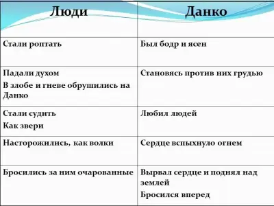 - Чем сюжет легенды о Данко отличается от библейской истории? (Моисей опирается на помощь Бога, так как исполняет его волю. Данко, испытывая любовь к людям, сам вызывается спасти их, ему никто не помогает.)