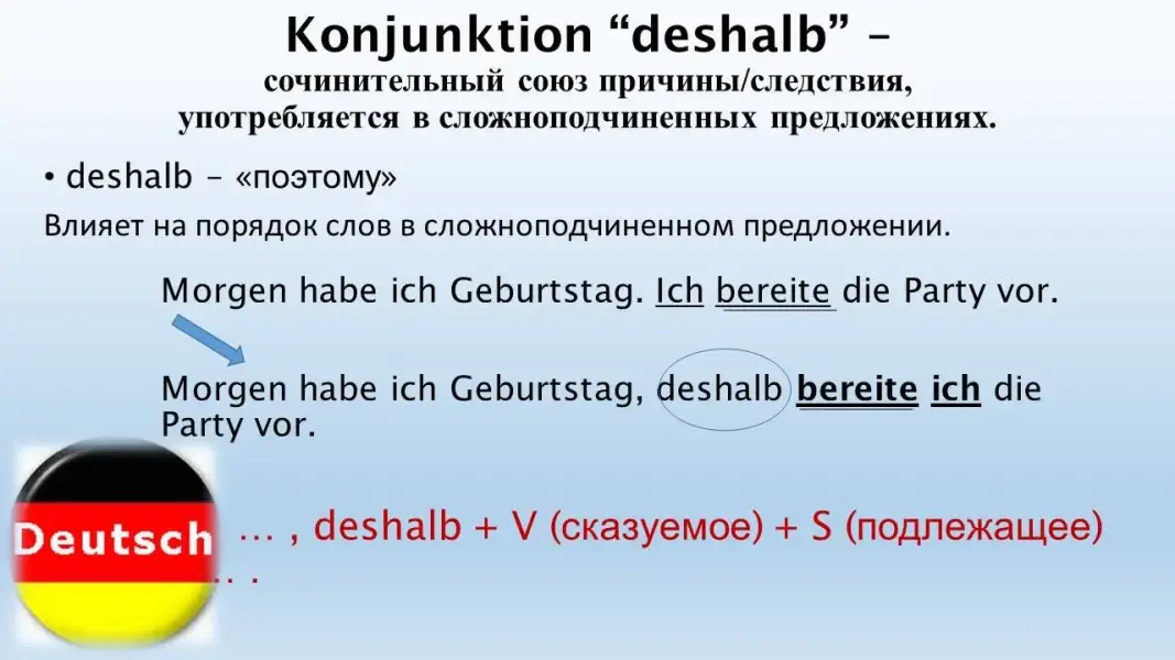 Презентация к уроку немецкого языка в 6-м классе на тему "Вечеринки. Предложения с союзом deshalb"