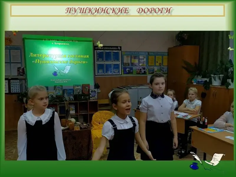 Слайд 1 Литературная гостиная «Пушкинские дороги»