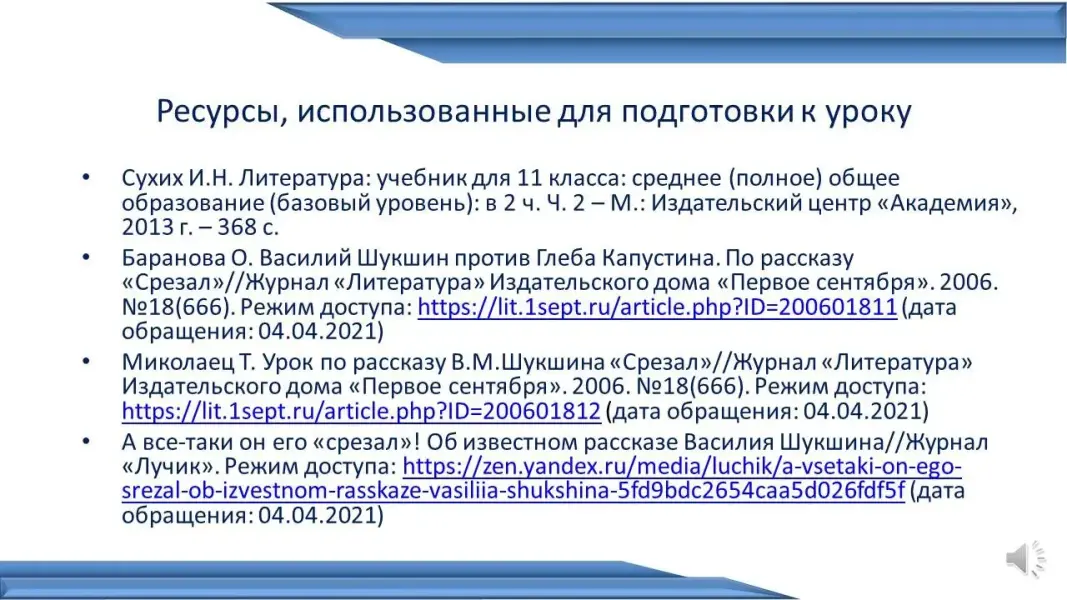 Урок литературы в 11-м классе по теме "В.М.Шукшин. Рассказы"