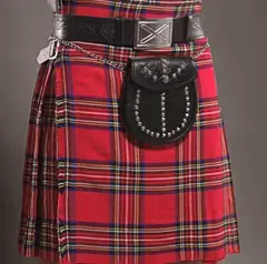 Юбка и берет изготавливаются из шерстяной ткани с традиционным шотландским рисунком из клеток и полос - тартаном (в России такой материал известен под названием шотландка) |