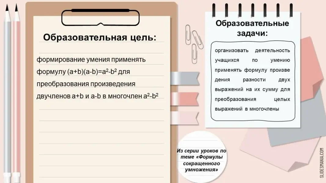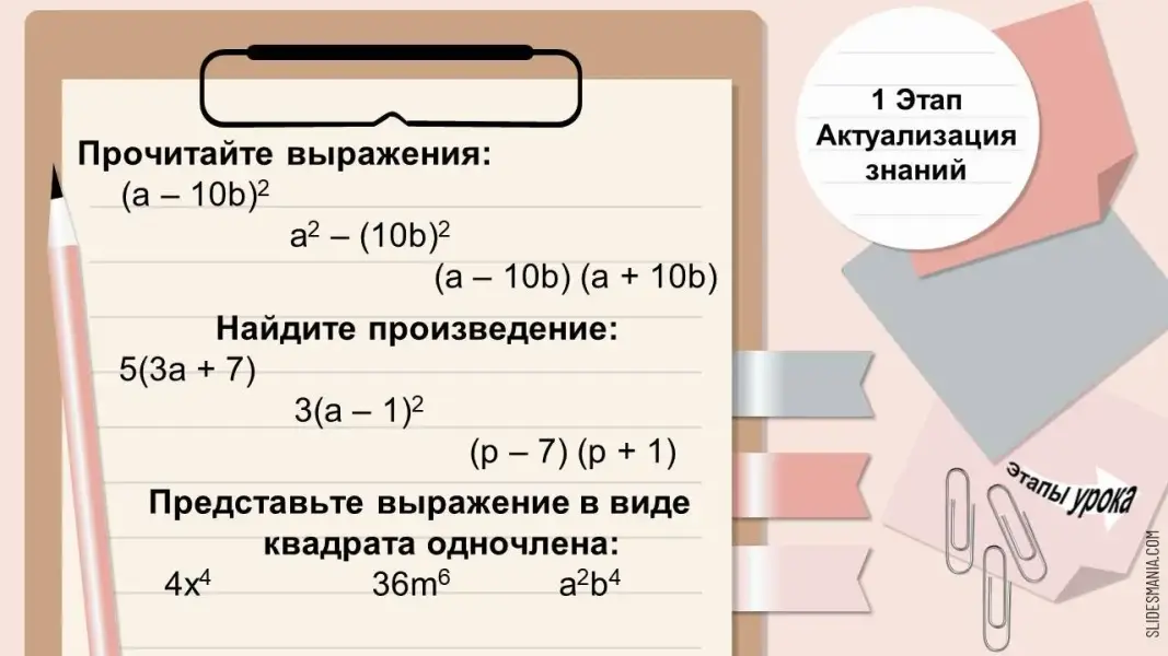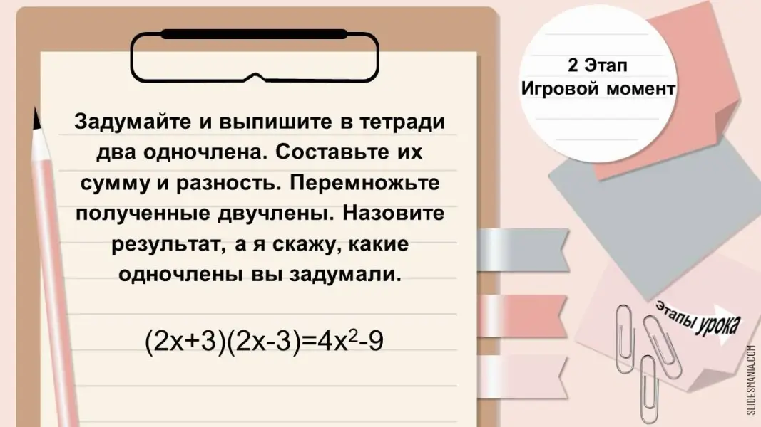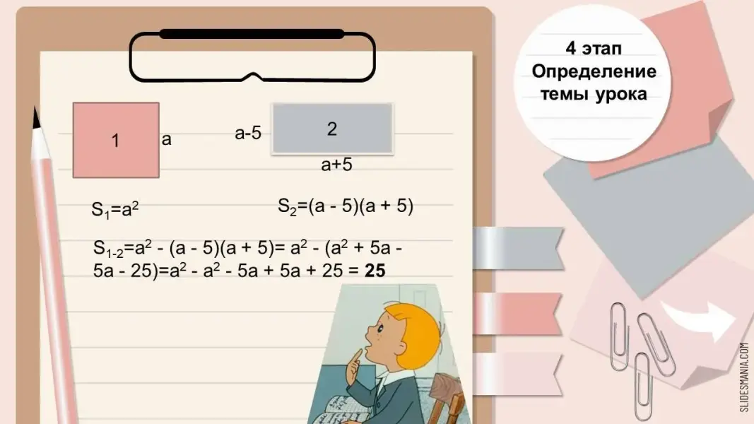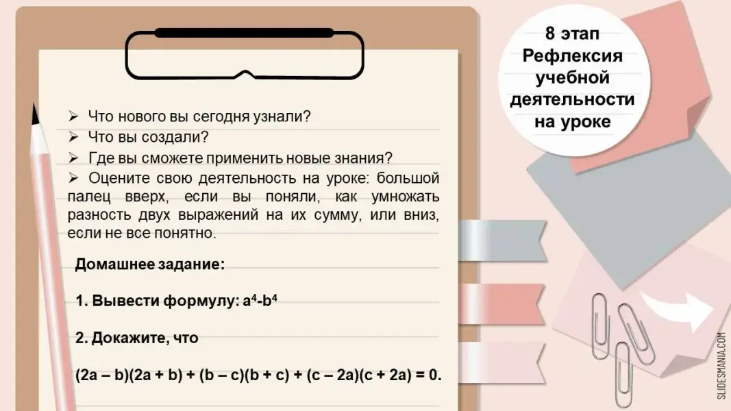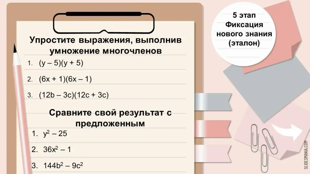 Умножение разности двух выражений на их сумму (урок открытия нового знания)
