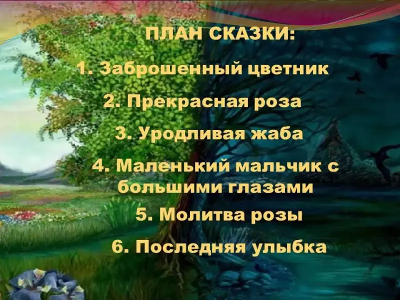 Высказывают свое мнение, определяют смысл изучаемой темы. Аргументированно определяют наиболее подходящую пословицу. Характеризуют жабу и розу. Высказывают свое мнение, определяют смысл изучаемой темы. Оценивают свое место в мире добра и зла. Определяют учебную задачу, задают уточняющие вопросы. |