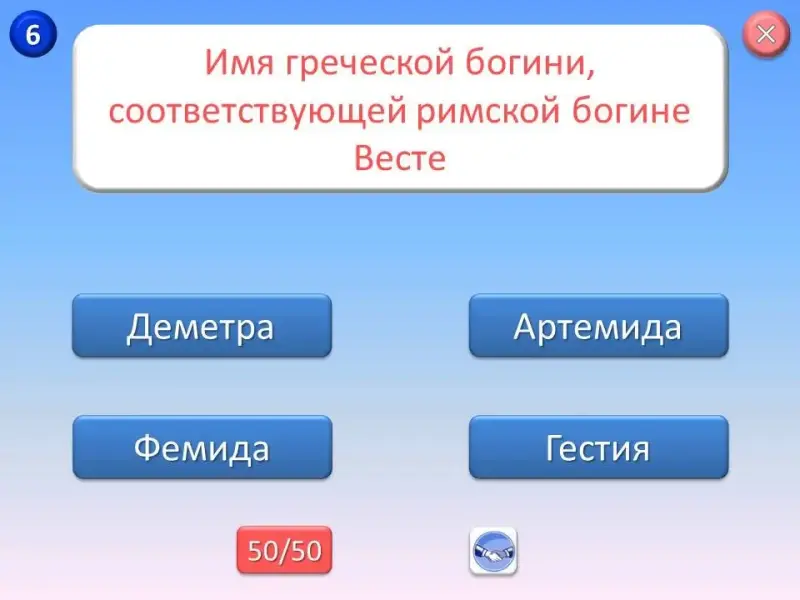 - Игроки могут воспользоваться подсказками «50 на 50» и «помощь зала» при обсуждении ответа на один из шести вопросов.