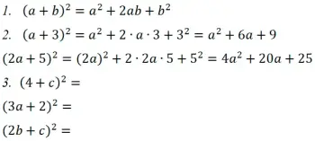 К таким работам можно отнести работы по карточкам, которые состоят из чередования трех блоков: 1 - опорная формула, 2 - решенный пример, 3 - пример, для самостоятельного решения учащимися. Приведем содержание такой карточки на тему: «Формулы сокращенного умножения» из курса алгебры седьмого класса.