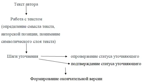 Таким образом, получение более сложного понимания позиции автора в процессе его уточнения можно графически представить следующим образом: