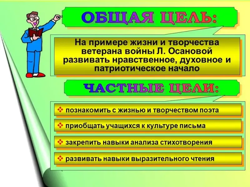 - Дать общее представление о жизни и творчестве поэта, вызвать интерес к творчеству Людмилы Осановой.