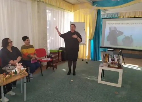 Методика «Расскажи стихи руками» широко используется педагогами при работе с детьми. Чтение простых стихотворений сопровождается движениями рук, пальцев. Взрослый читает стихи по одной строчке, а ребёнок воспроизводит эту строчку, сопровождая соответствующими выразительными движениями рук. Показывать можно не только строки, но и каждое слово. Этот вид деятельности - прекрасная возможность проявить совместное творчество, снять зажатость и неуверенность у ребёнка.