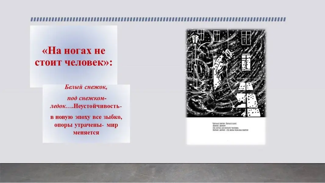 8 слайд. Не стоит на ногах человек - все зыбко в революционное время, нет опоры- мир меняется. Ветер- символ перемен: