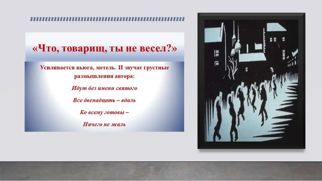 10 слайд. А вперед, в неведомую даль идут двенадцать: революционный патруль, представители нового мира: