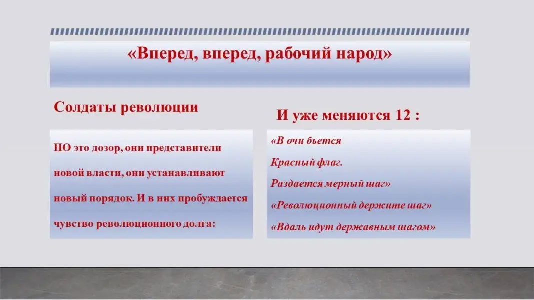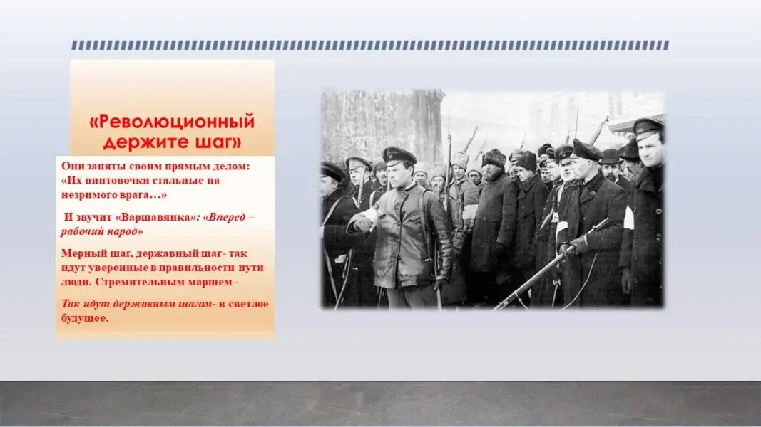 И звучит «Варшавянка»: «Вперед - рабочий народ»