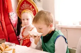 - Дети в русских народных костюмах.