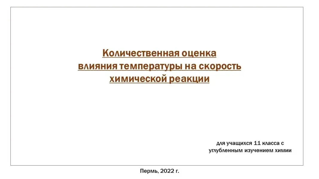 Представленная на конкурс презентация используется в процессе изучения вопроса «Влияние температуры на скорость химической реакции» по углублённой программе 11 класса в рамках курса общей химии.