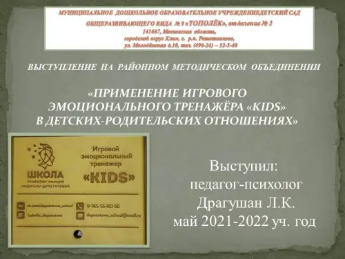 Применение игрового эмоционального тренажёр "KIDS" в детско-родительских отношениях. Психолого-педагогическое сопровождение педагогов и родителей (законных представителей)"
