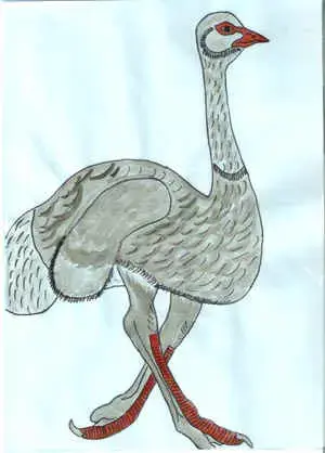 Страус хоть и птица, но летать не умеет, зато очень быстро бегает. Ноги у него сильные, хороший слух и зрение. На голове, как у всех птиц - клюв.