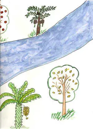 По берегам рек растут лимоновые и апельсиновые деревья, кокосовые пальмы, бананы.