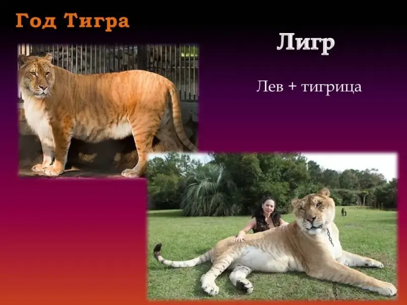 13. При скрещивании тигра и львицы получается животное - тигон. (слайд 17)