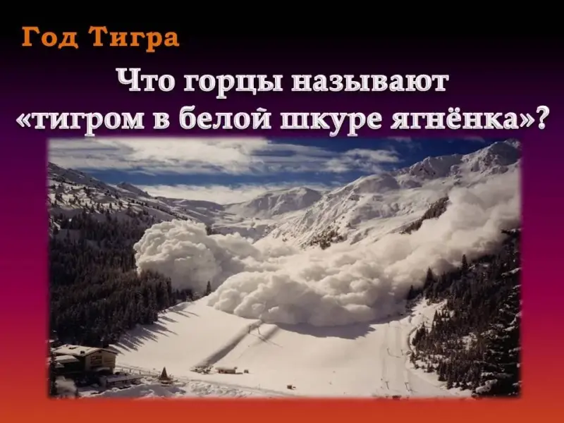 - Что горцы называют «тигром в белой шкуре ягнёнка»? (снежную лавину)