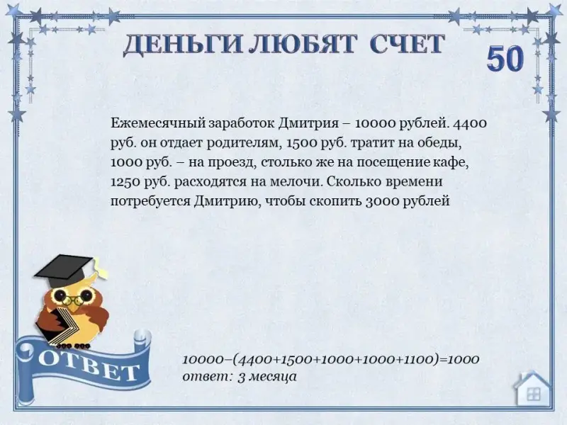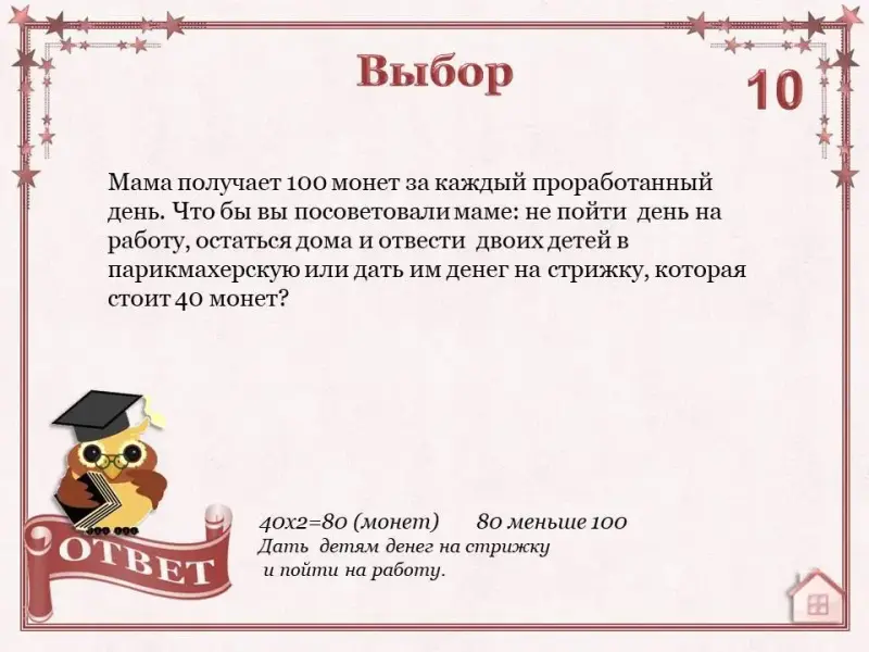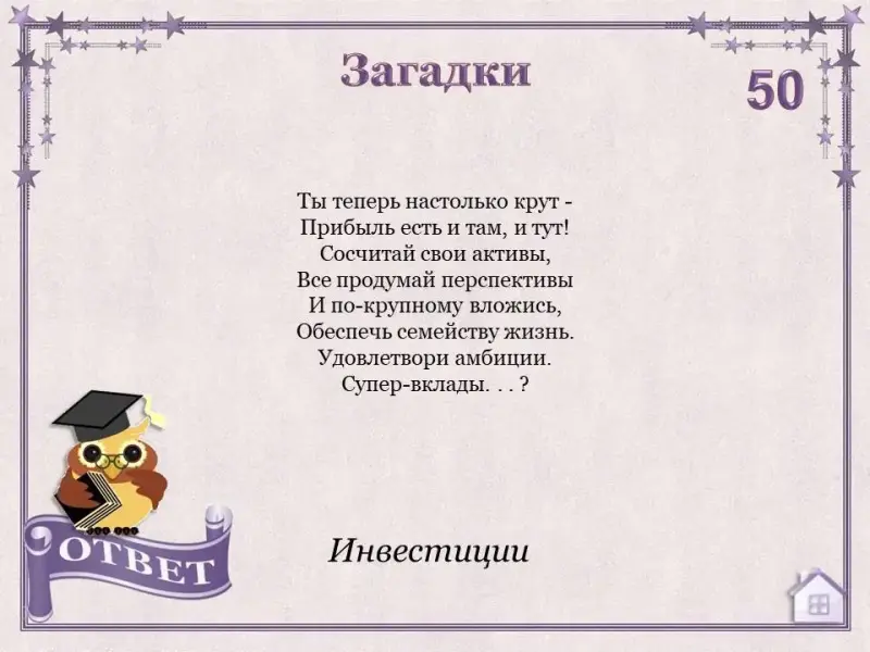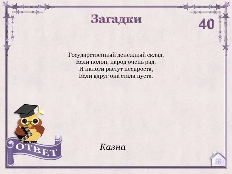 Задача каждого обучающегося набрать как можно больше баллов. Для этого необходимо правильно ответить на вопросы в игре. Каждый вопрос имеет свою стоимость.