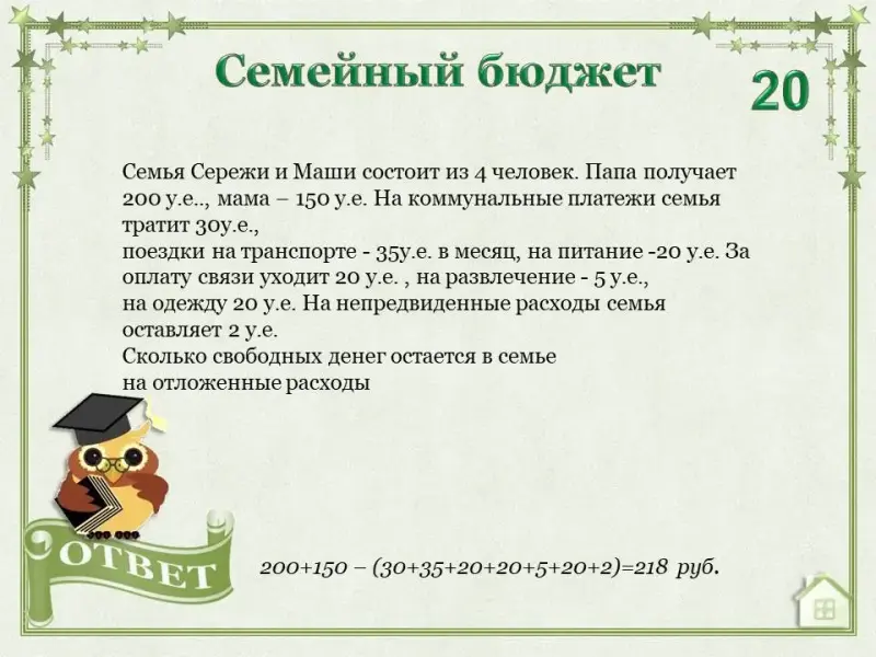 - развитие памяти, внимания, математического и экономического мышления;