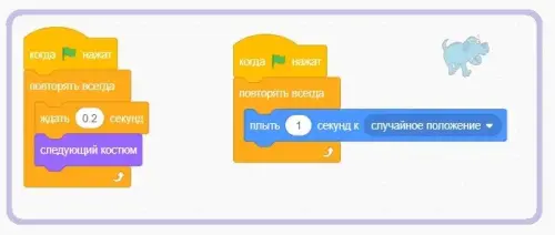 Составление кода движения спрайта в заданном направлении, затем в случайном направлении. Проверка работы программы.