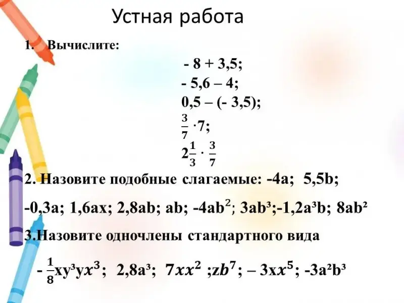 Вводный урок по теме "Многочлены". 7-й класс
