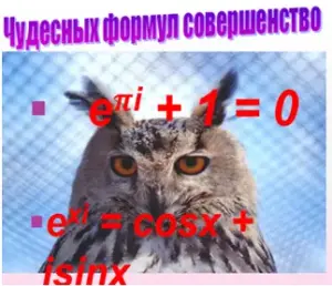 Эстетический эффект этого равенства объясняется сжатостью и глубиной смысла, который оно выражает. В равенство входят 5 господствующих в математике чисел: 0, 1, π, е, i, о каждом из которых написана не одна книга. С е иiвы познакомитесь в старших классах.